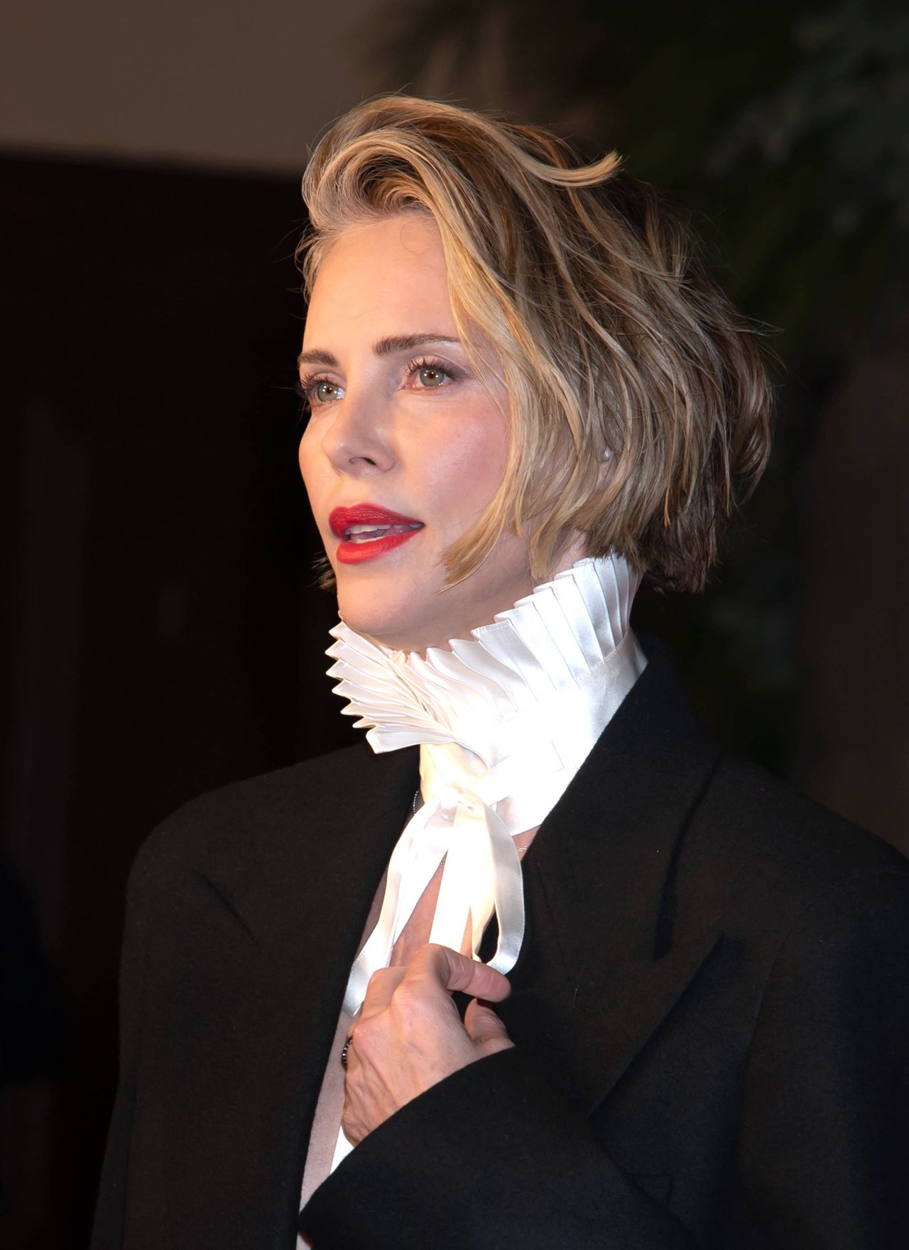 Pentru eveniment, vedeta a ales o ținută elegantă și îndrăzneață, compusă dintr-un costum negru cu croială masculină, purtat peste o bluză albă cu guler înalt și detalii sofisticate. Apariția sa a fost una rafinată, dar cu un aer puternic și modern, atrăgând toate privirile pe covorul roșu, potrivit Yahoo News.